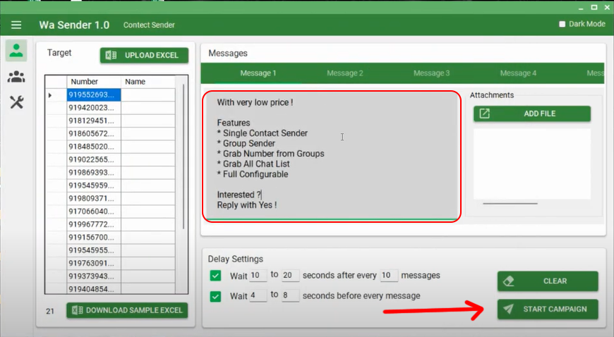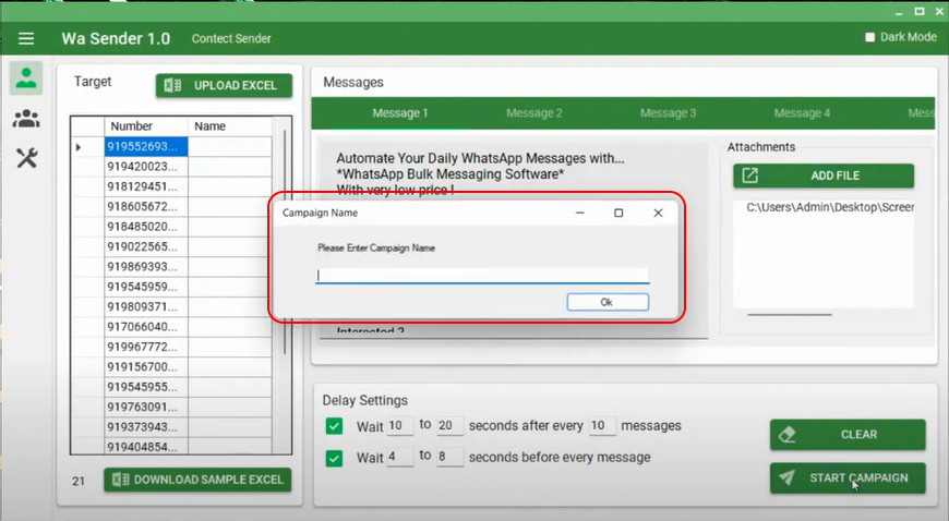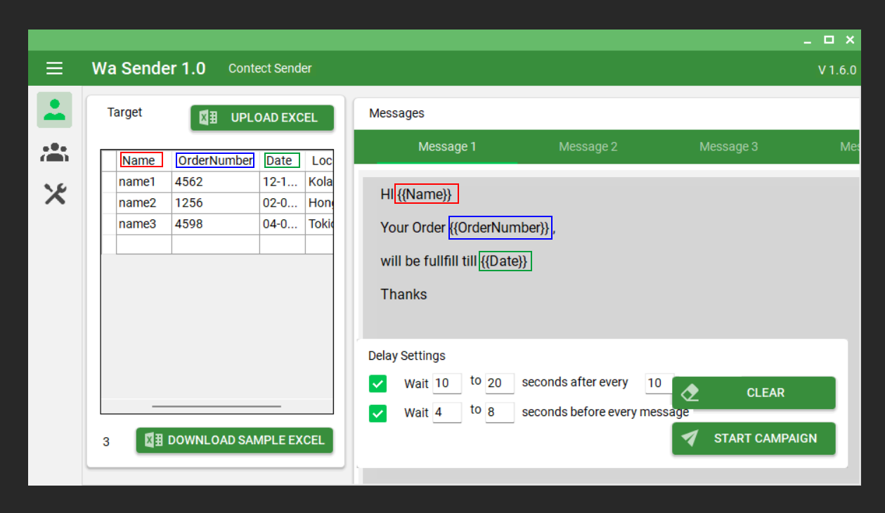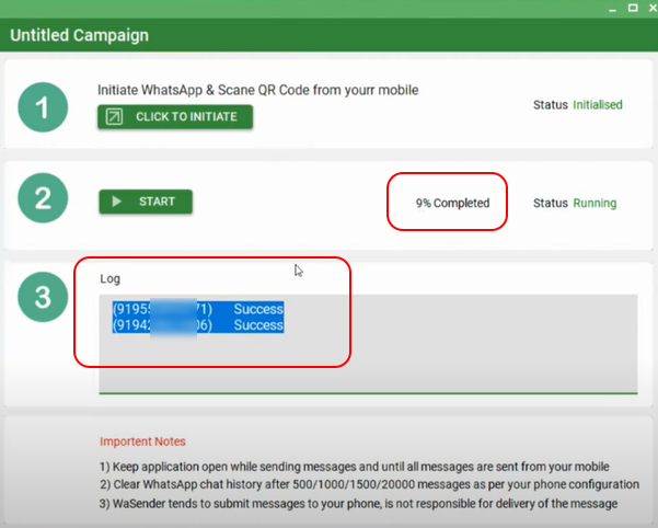 10)Do not send more than 600 messages per hour. Bulk Whatsapp Sender has a unique capping option where you can tell Bulk Whatsapp Sender when to stop sending messages.